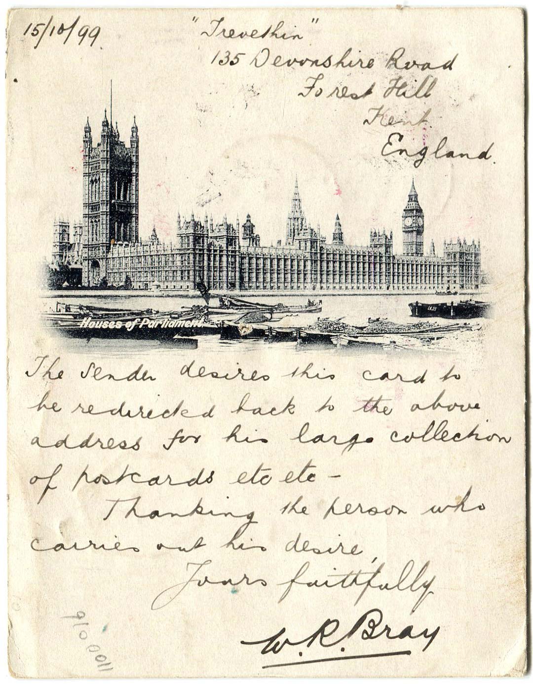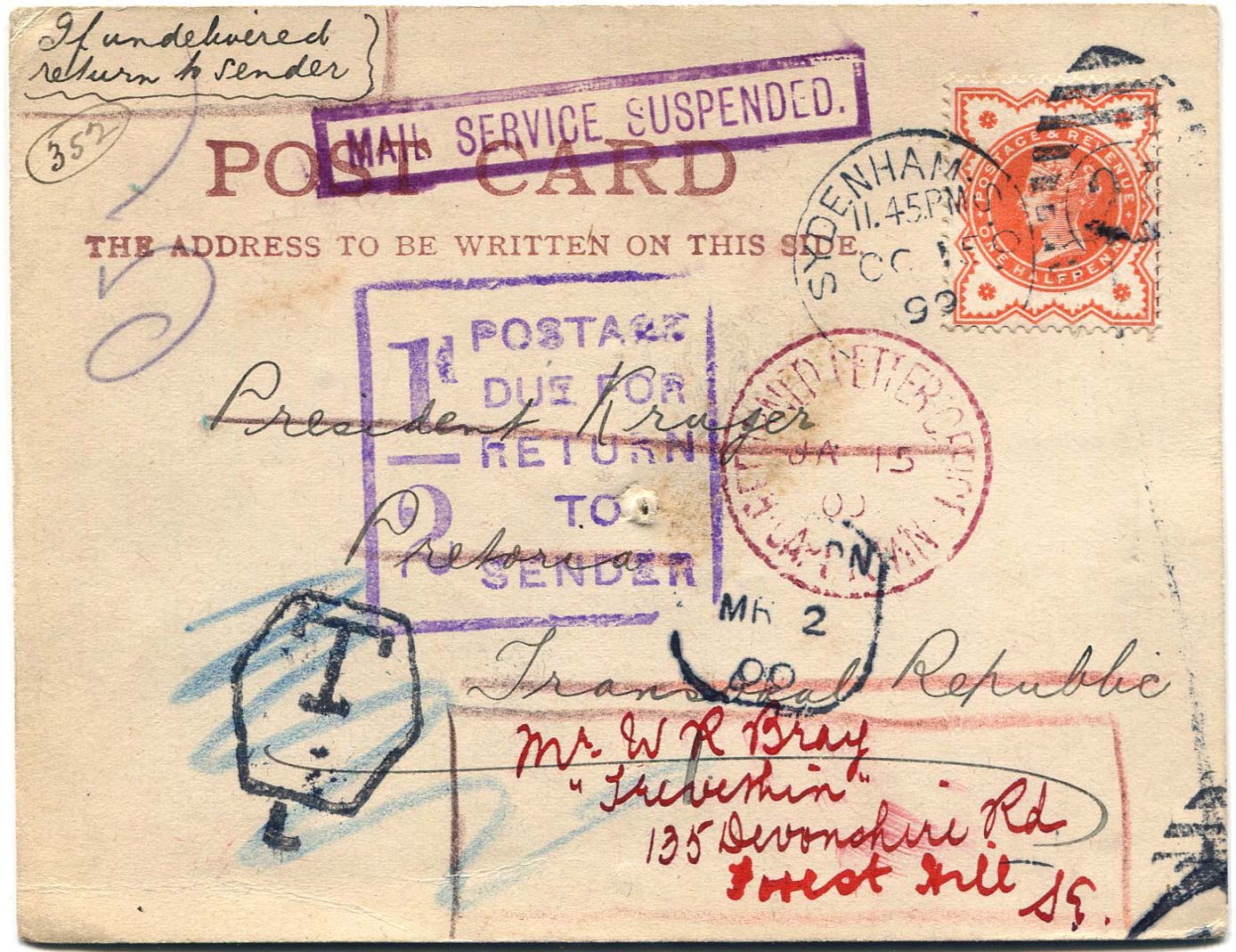 The second Boer War commenced five days before this postcard was posted. No autograph was requested and this was probably an attempt to see if it got through to "the enemy".