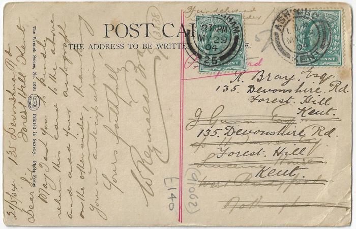 Picture postcard sent by Bray to John Gunn on 21st May 1904 asking for his autograph.