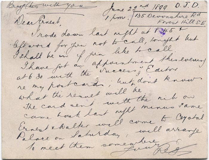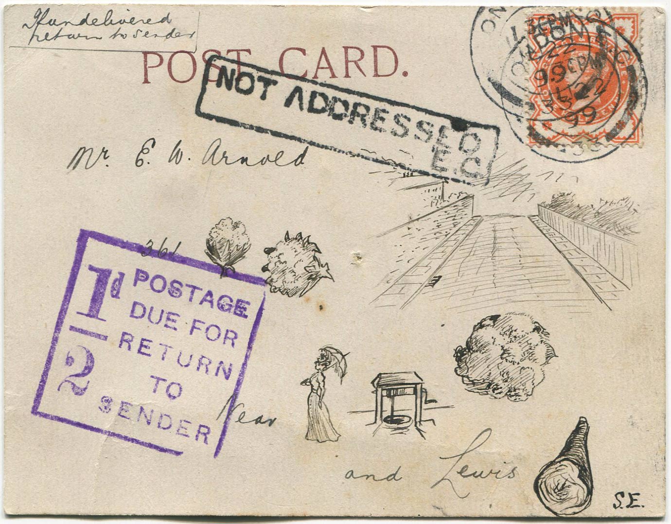 Sent by Bray, with the address written in the form of a rebus puzzle, on 22nd June 1899.