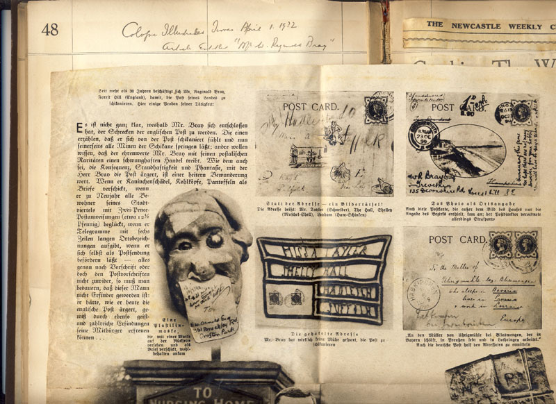 Also shown is a cutting from a 1932 issue of the Cologne Times that published an article about Bray. In the article a number of items featured on this website can be seen including this one.