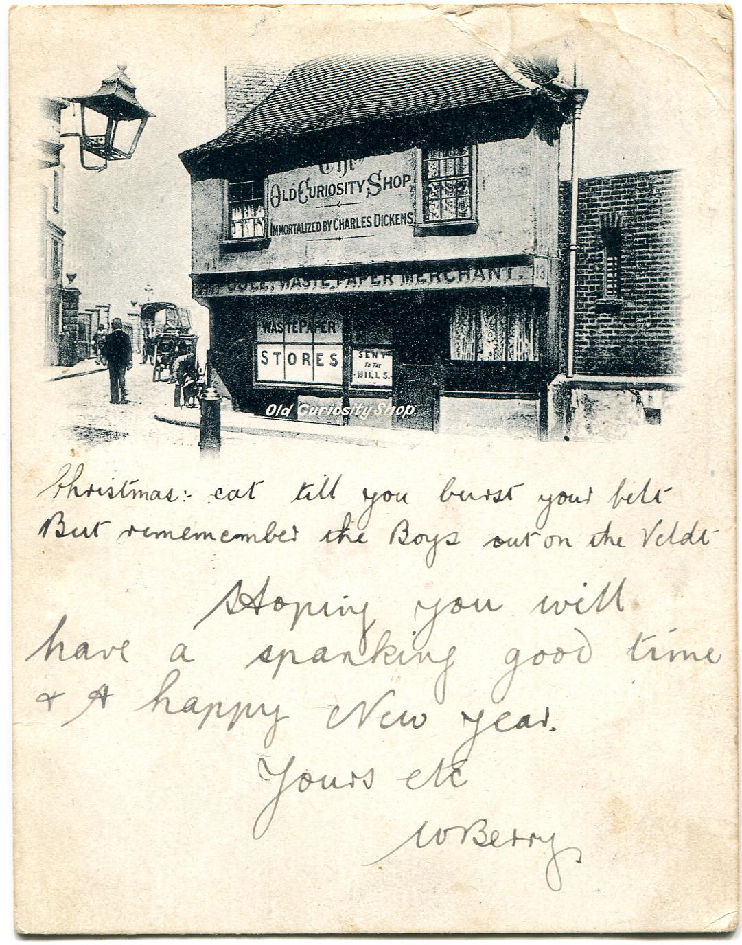 Picture postcard sent to Bray by Corporal W Berry in December 1900