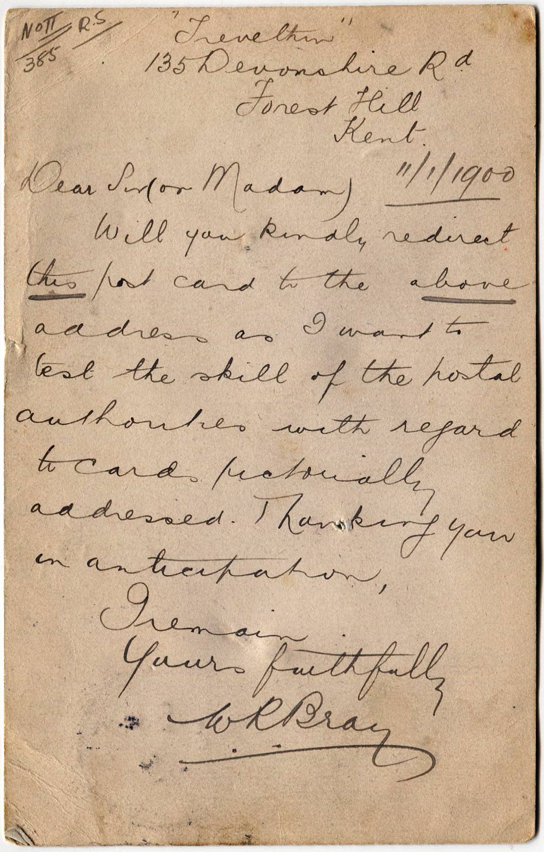 The card was successfully delivered to Mauchline, as evidenced by the postal markings, but was deemed contrary to regulations and thus attracted a 1d. charge.