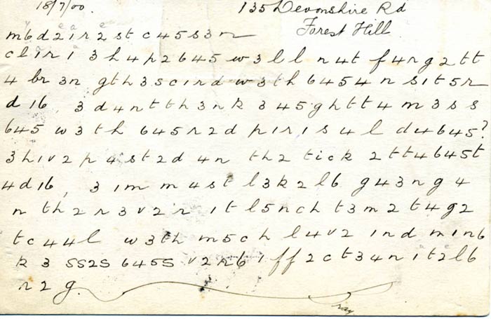 The message on the reverse side is written in the now-familiar substitution code.
