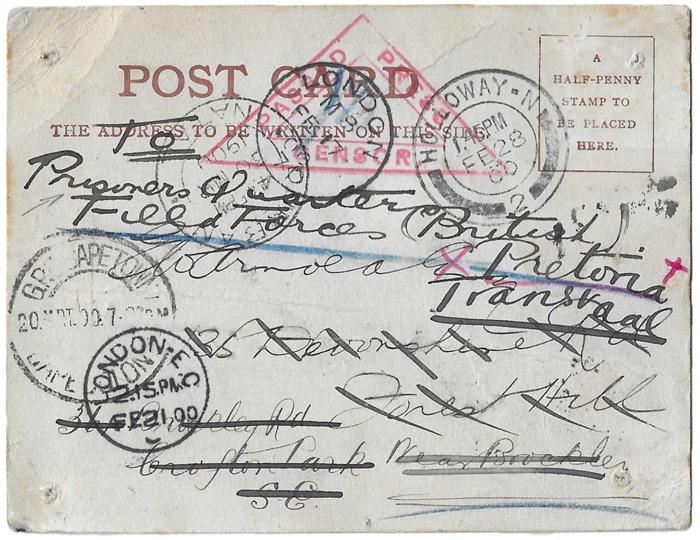 Posted for a third time on 28th Feb 1900 to Prisoners Quarters in South Africa (Boer War).