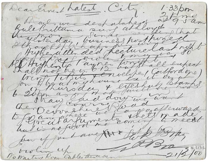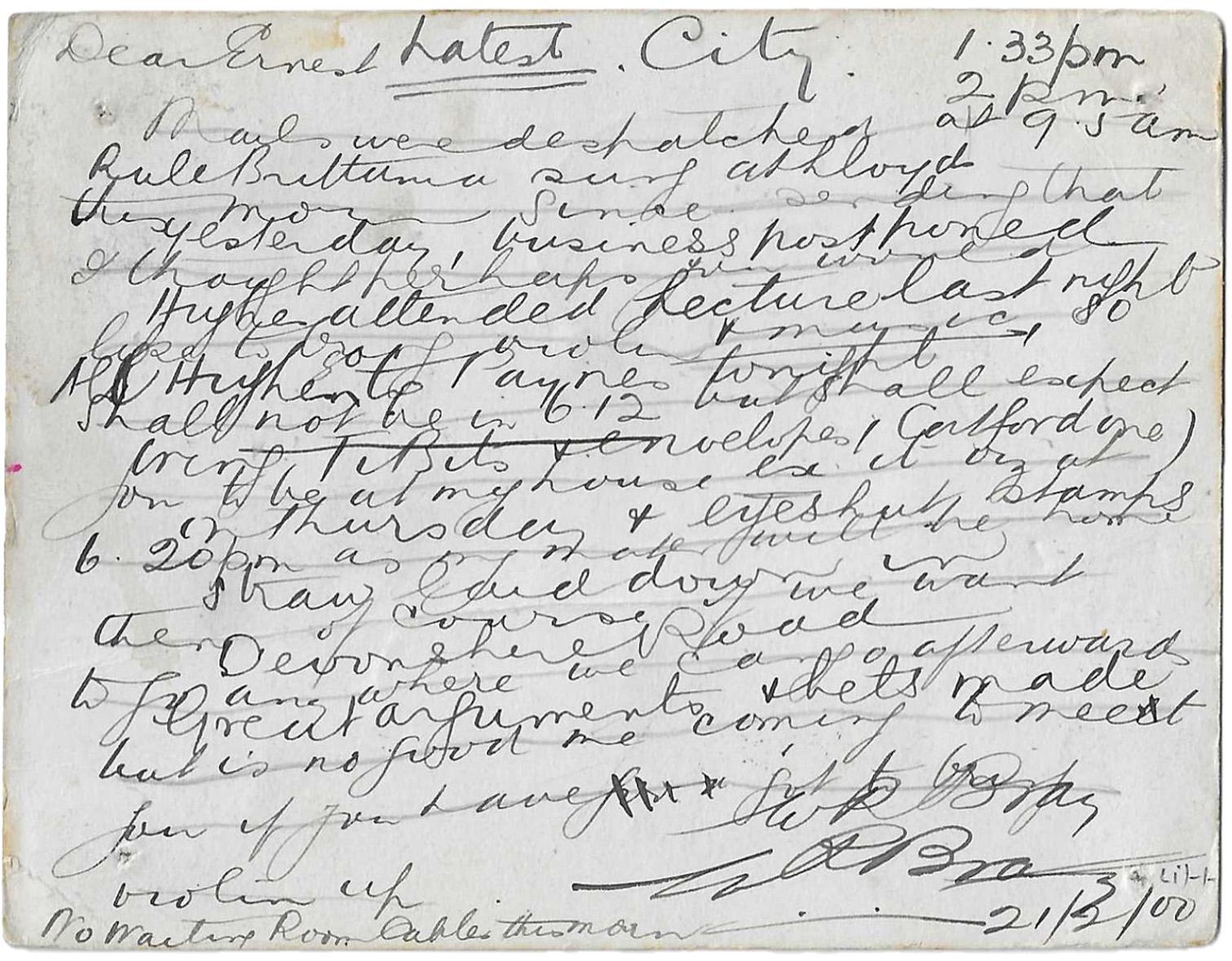 Posted again on 21st Feb 1900, again to EWA, with first message replaced by second message.