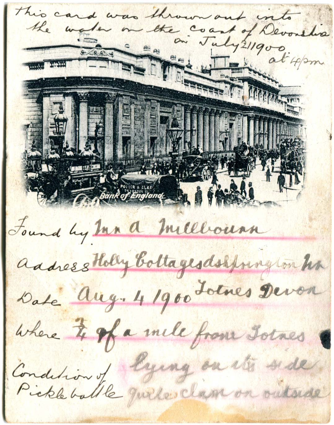 The bottle was thrown into the water off the coast of Devonshire and found by Mr A Millbourn on 14th August near Totnes.
