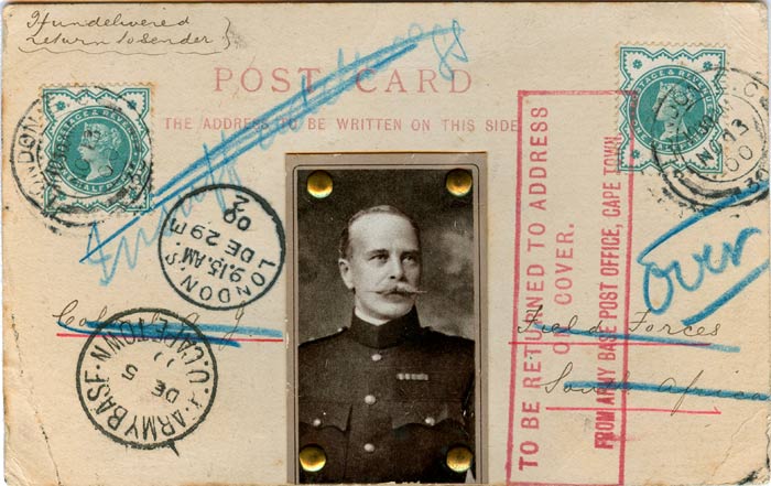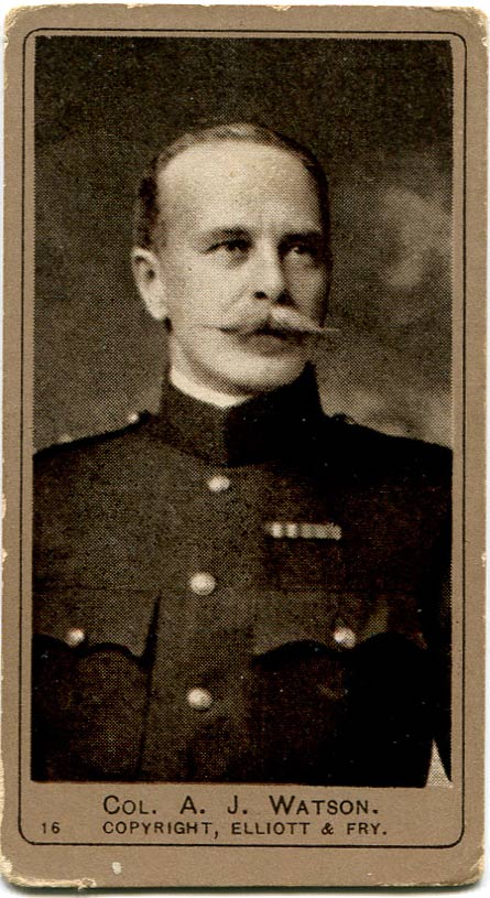 Unfortunately Colonel A.J. Watson had been killed in action at Colesberg in January 1900, ten months before the card was posted - the card was returned unsigned.