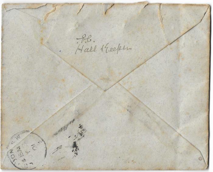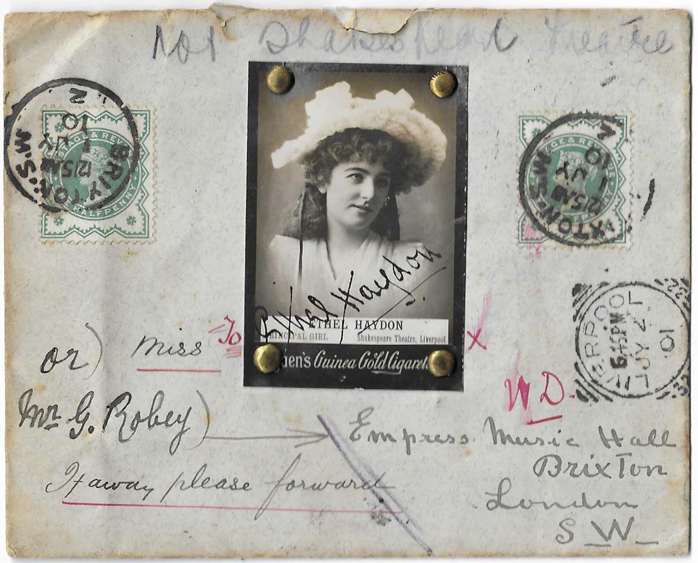 Envelope sent by Bray to (Cigarette card featuring Ethel Haydon) on 1st July 1901 requesting her autograph.
