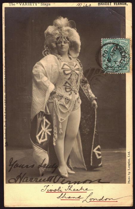 Harriet Vernon (9 October 185811 July 1923) was an English actress and singer of the Victorian era who appeared regularly in music hall, Victorian burlesque and pantomime in the 1880s and 1890s. In a career that spanned five decades, her final appearances were in 1923. Vernon also toured internationally, appearing in New York, Johannesburg and Berlin.