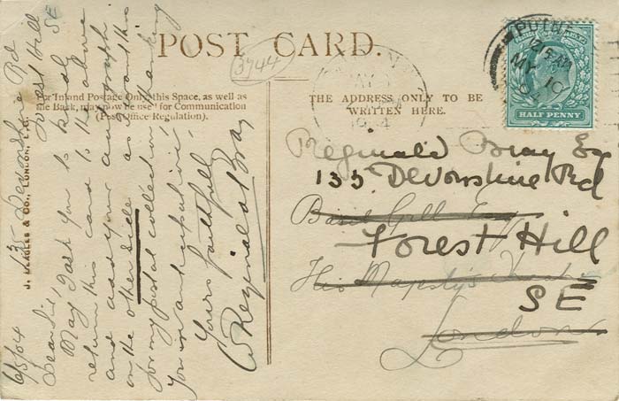 Picture postcard sent by Bray to Basil Gill on 6th May 1904 asking for his autograph.
