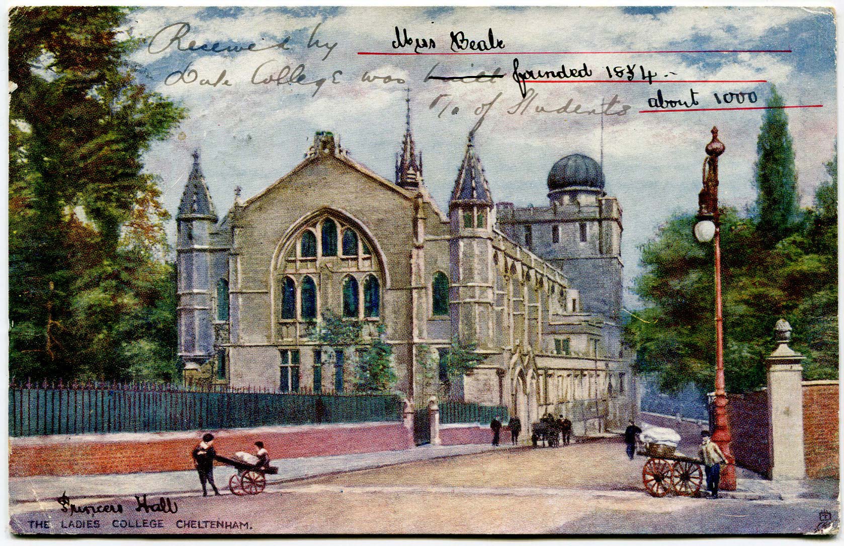 The school was founded in 1853 after six individuals, including the Principal and Vice-Principal of Cheltenham College for Boys and four other men, decided to create a girls' school that would be similar to Cheltenham College for Boys. On 13 February 1854, the first 82 pupils began attending the school, with Annie Procter serving as the school's Principal. In 1858, upon Procter resigning from her position, the Principal's post was taken by Dorothea Beale, a prominent suffragist educator who introduced subjects such as maths and science, despite parental opposition, and later founded St Hilda's College, Oxford. She was commemorated by a Cheltenham Civic Society blue plaque in 2017.