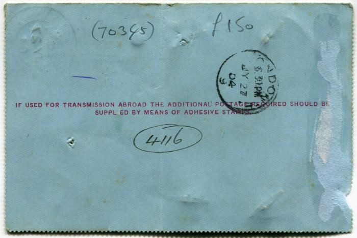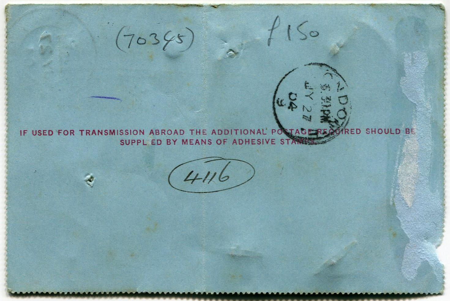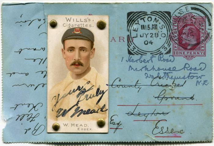 Lettercard postcard sent by Bray to Walter Mead, on 27th July 1904 asking for his autograph.