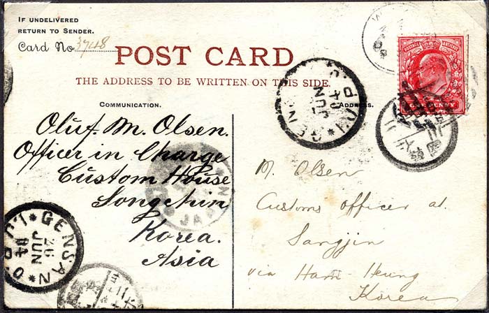 Postcard sent by Bray to Oluf Olsen in May 1904 asking for his autograph.
