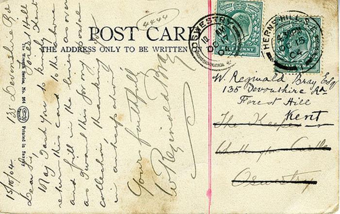 Picture postcard sent by Bray to The Keeper, Whittington Castle, Oswestry on 15th October 1904 asking for information to be supplied.