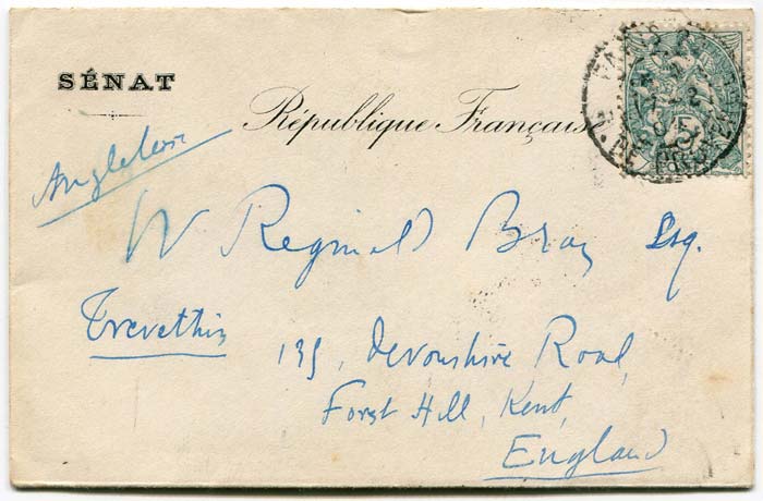 Postcard sent by Bray to Louis Pauliat in March 1904 asking for his autograph.