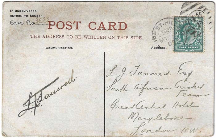 Postcard sent by Bray to Louise Joseph Tancred in May 1904 asking for his autograph.