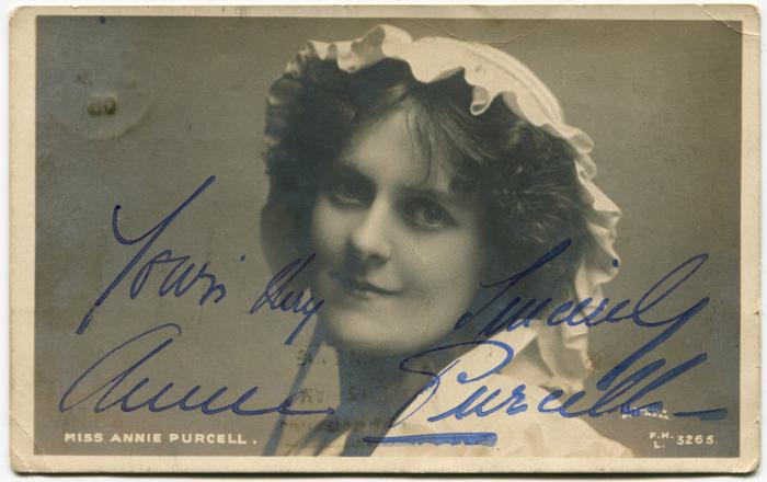 Picture postcard sent by Bray to Annie Purcell on 5th June 1905 requesting her autograph.