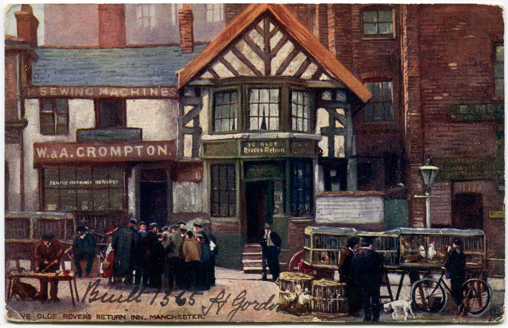 Source: https://historyme.wordpress.com/2011/08/13/ye-olde-rovers-return-inn-1306-1958-shudehill-manchester/