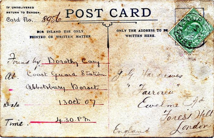 The card was addressed to be sent back to James Hargreaves, Bray's future father-in-law.