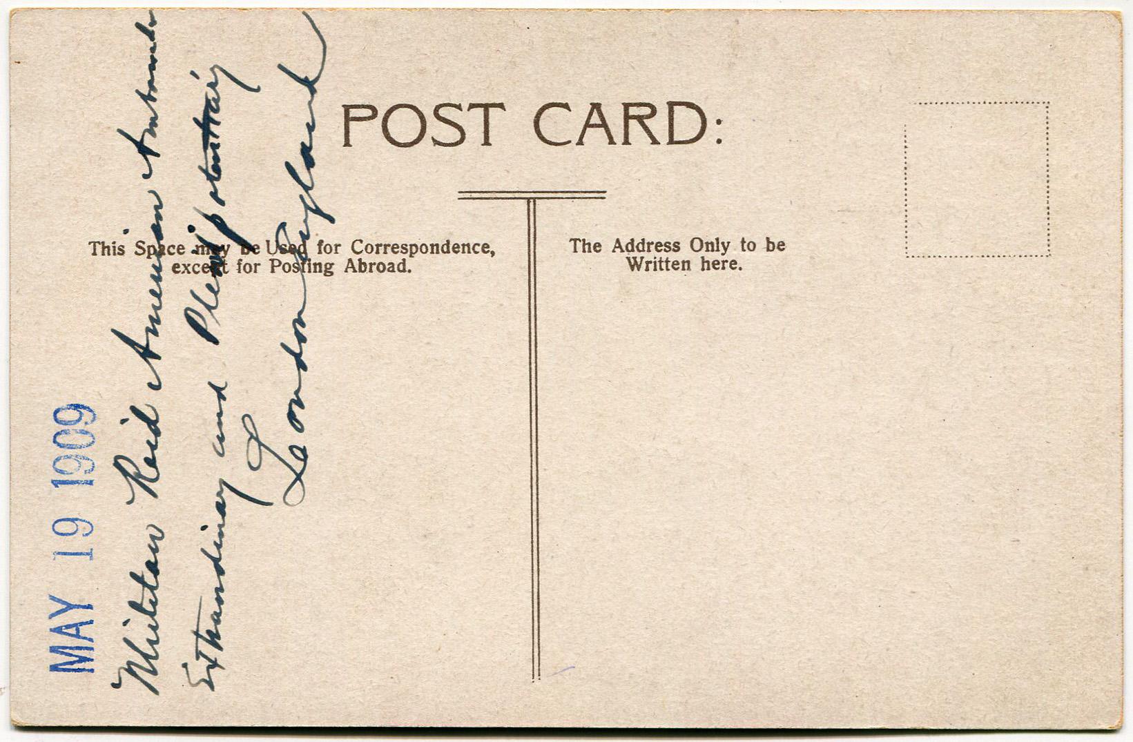 Picture postcard signed by Whitelaw Reid on 19th May 1909.