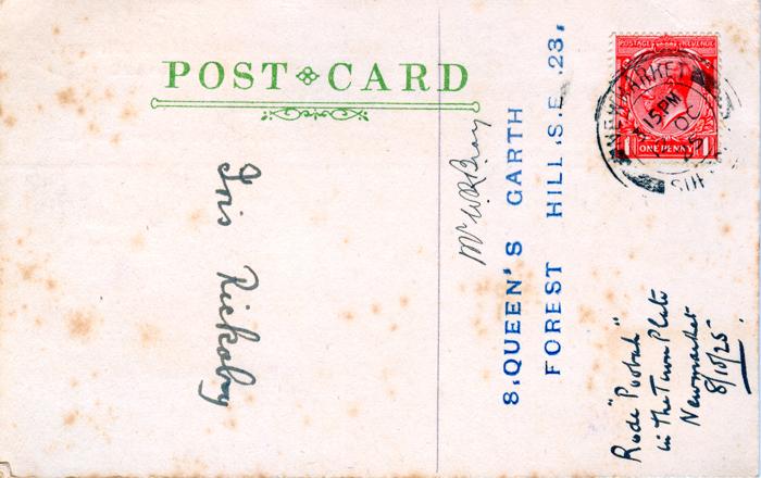 Postcard sent by Bray to Iris Rickaby on 10th October 1925 asking for her autograph.