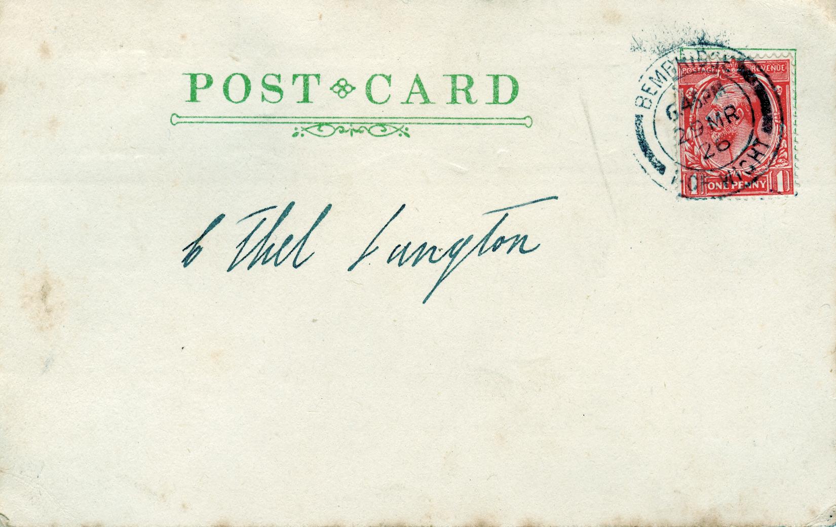 Postcard sent by Bray to Ethel Langton on 2nd January 1926 asking for her autograph.