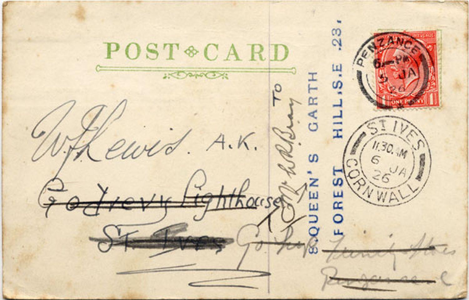 Postcard sent by Bray to W.J. Lewis on 2nd January 1926 asking for his autograph.