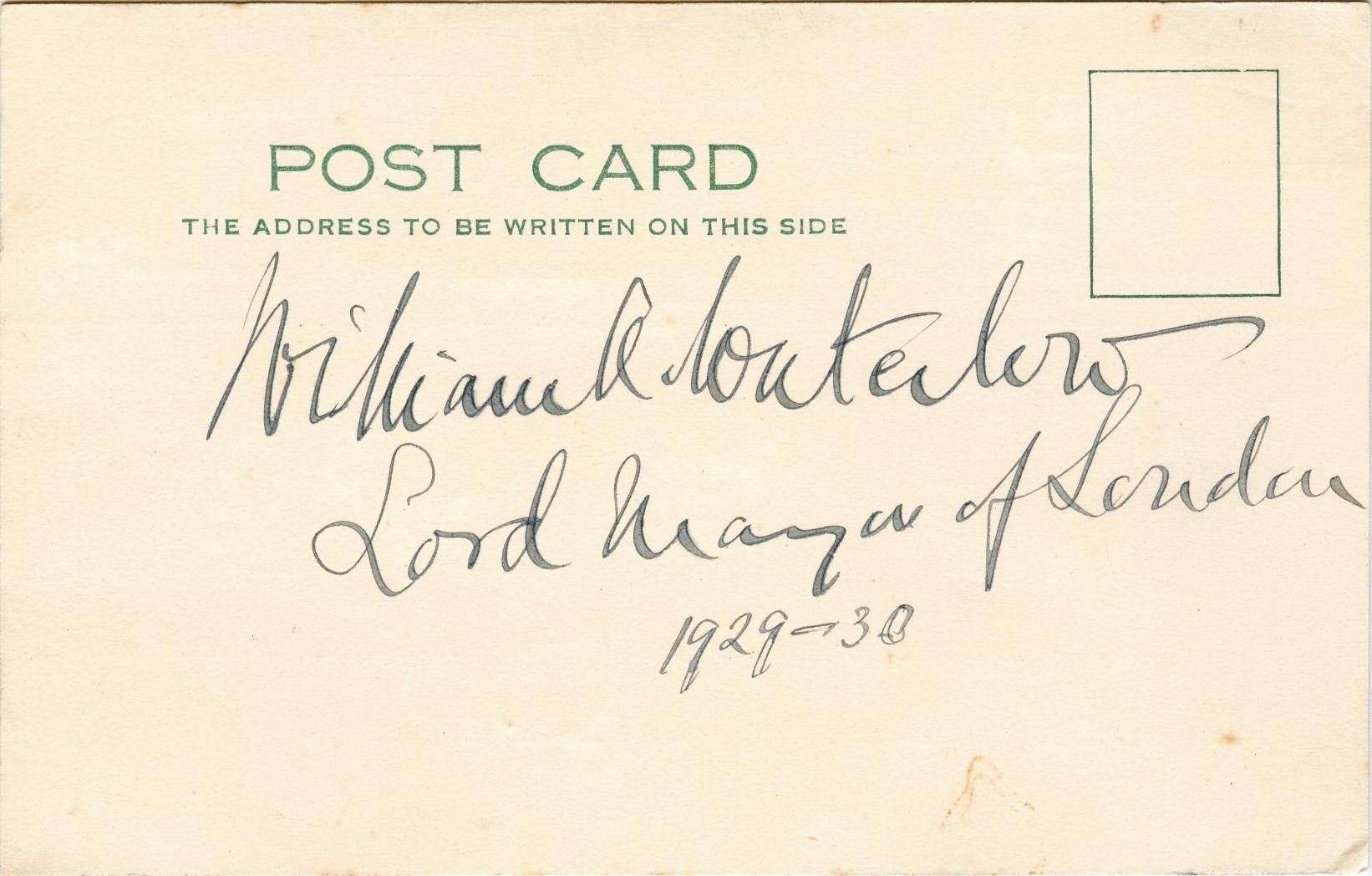 Postcard sent by Bray to William Waterlow on 9th November 1929 asking for his autograph.