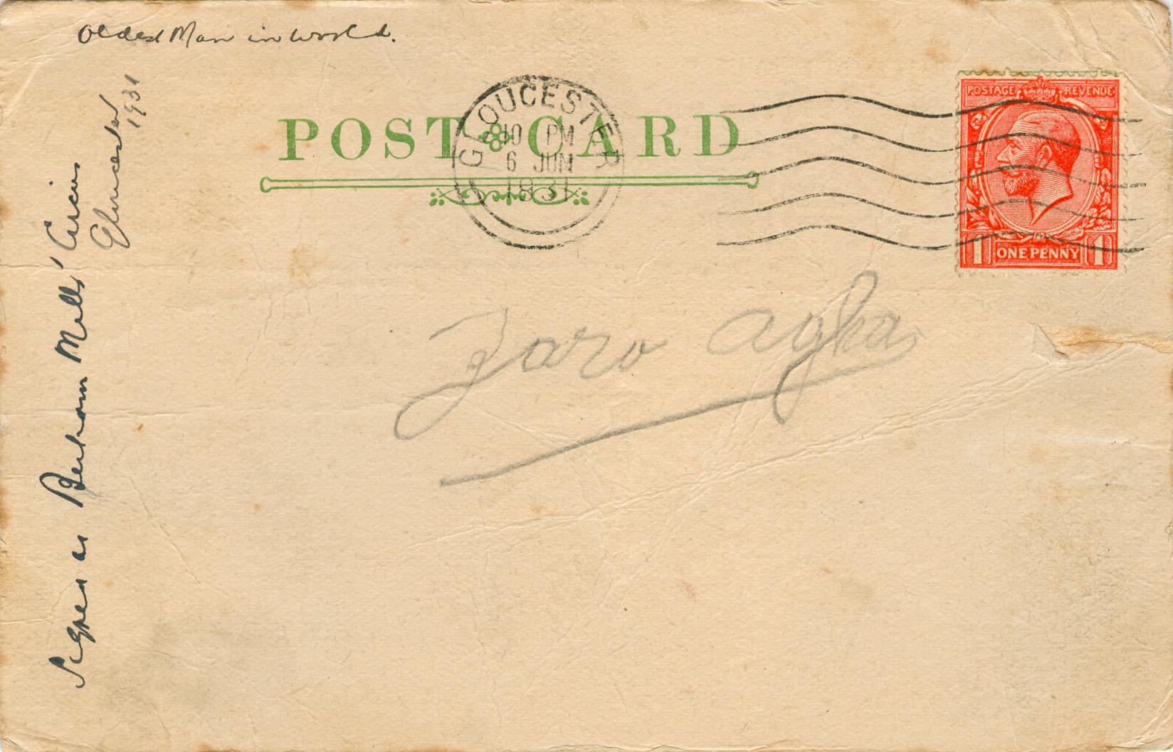 Postcard sent by Bray to Zaro Aga on 5th June 1931 asking for his autograph.