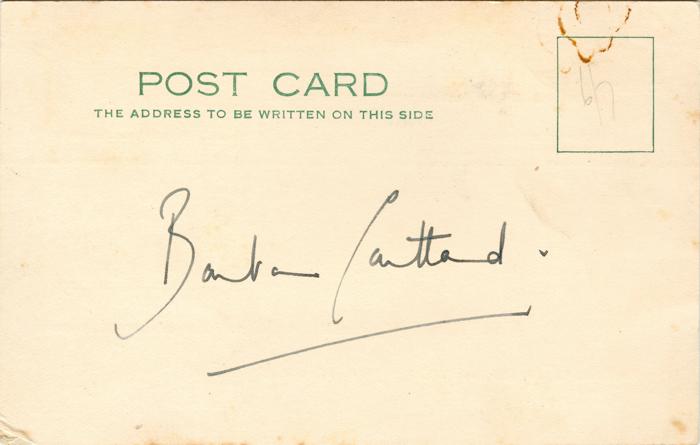Postcard sent by Bray to Barbara Cartland on 25th June 1931 asking for her autograph.