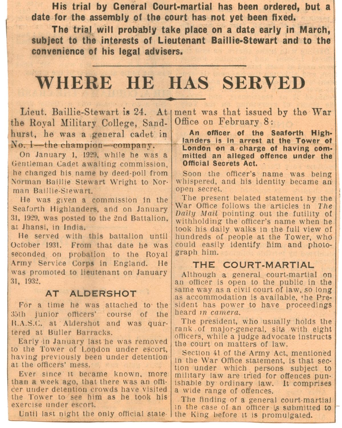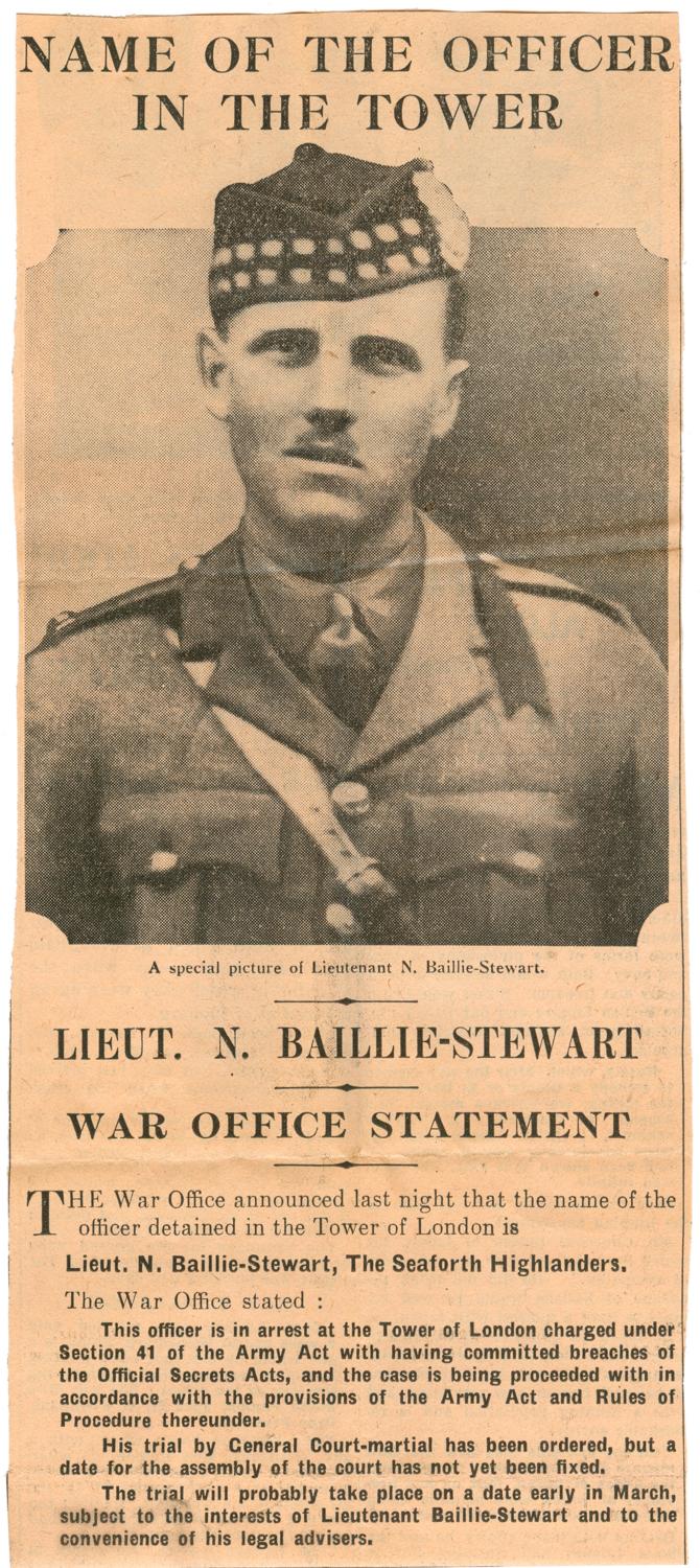 Norman Baillie-Stewart (15 January 1909 - 7 June 1966) was a British army officer known as The Officer in the Tower when he was imprisoned in the Tower of London. An active sympathiser of Nazi Germany, he took part in German-produced propaganda broadcasts and is known as one of the men associated with the nickname Lord Haw-Haw.