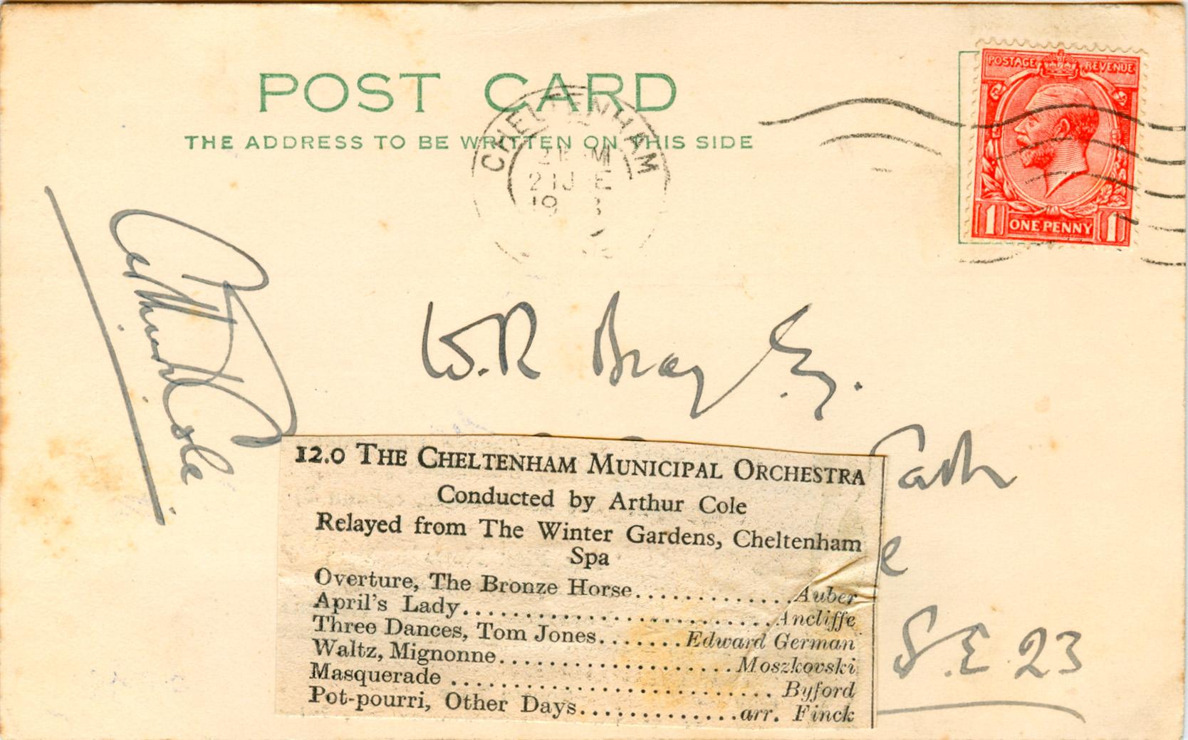Postcard sent by Bray to Arthur Cole on 24th June 1933 asking for his autograph.