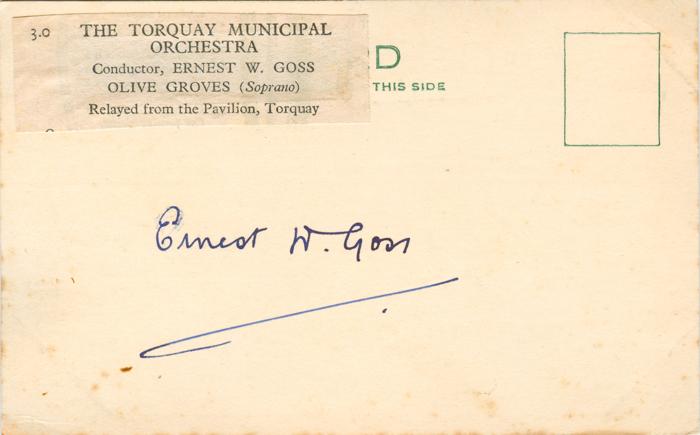 Postcard sent by Bray to Ernest W Goss on 25th November 1933 asking for his autograph.
