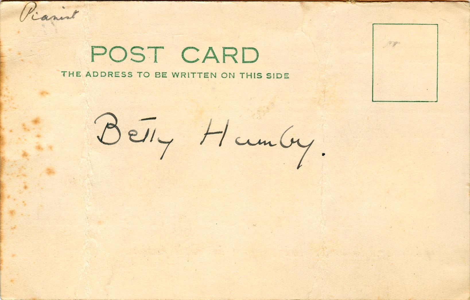 Postcard sent by Bray to Betty Humby on 1st January 1933 asking for her autograph.