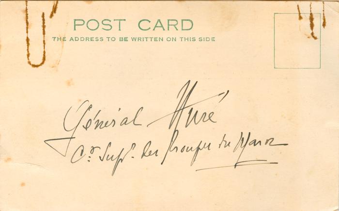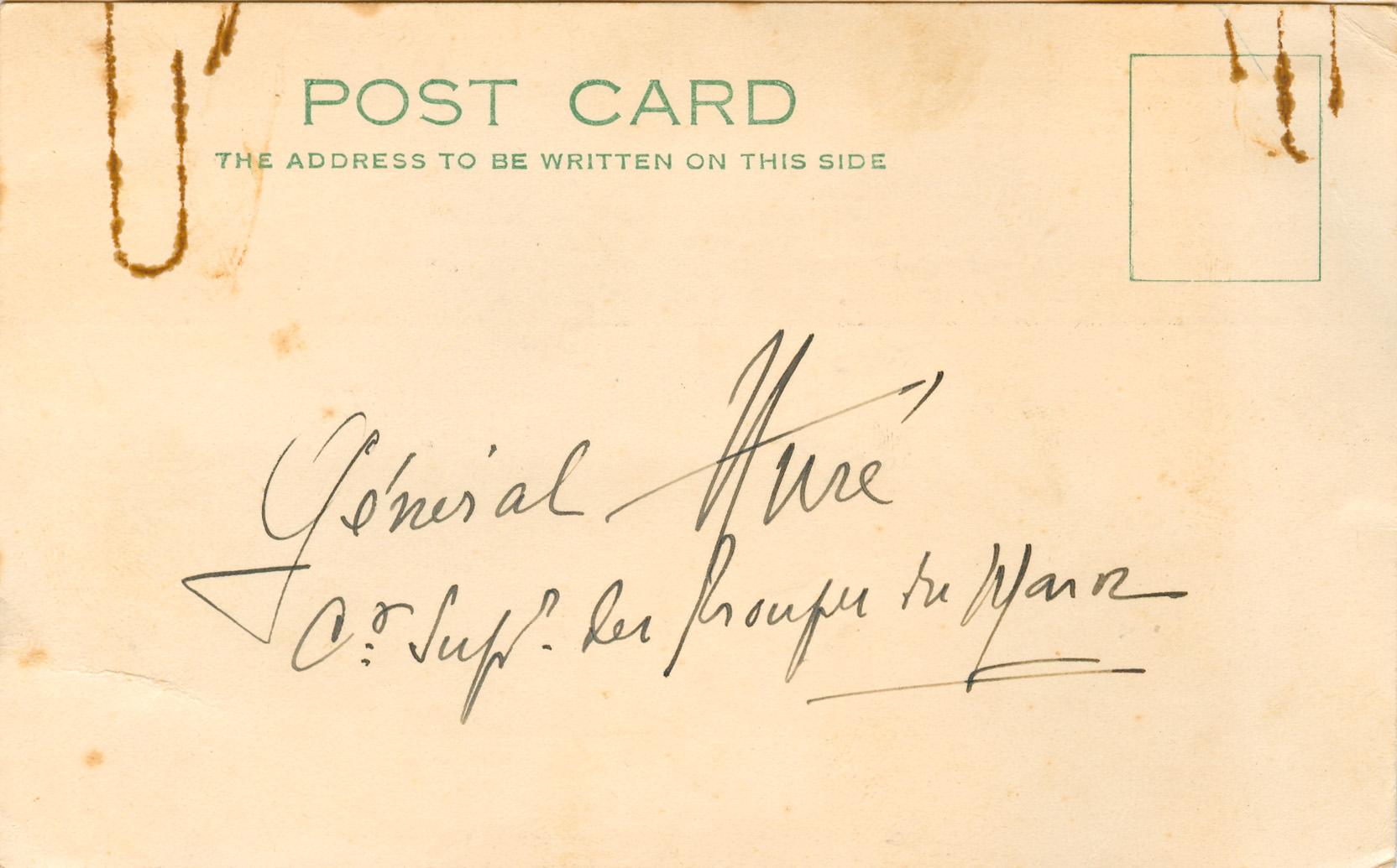 Postcard sent by Bray to General Hure on 5th August 1933 asking for his autograph.