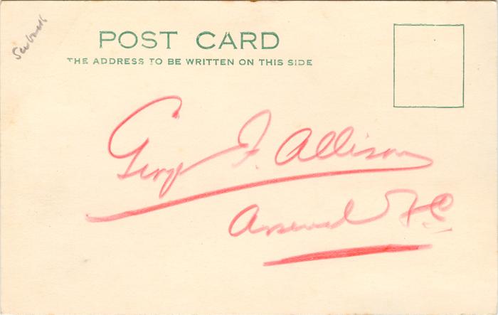 Postcard sent by Bray to George Allison on 10th November 1934 asking for his autograph.