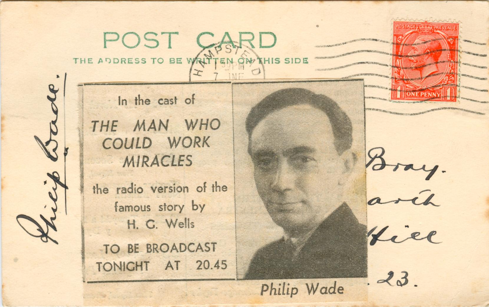 Postcard sent by Bray to Philip Wade on 2nd June 1934 asking for his autograph.