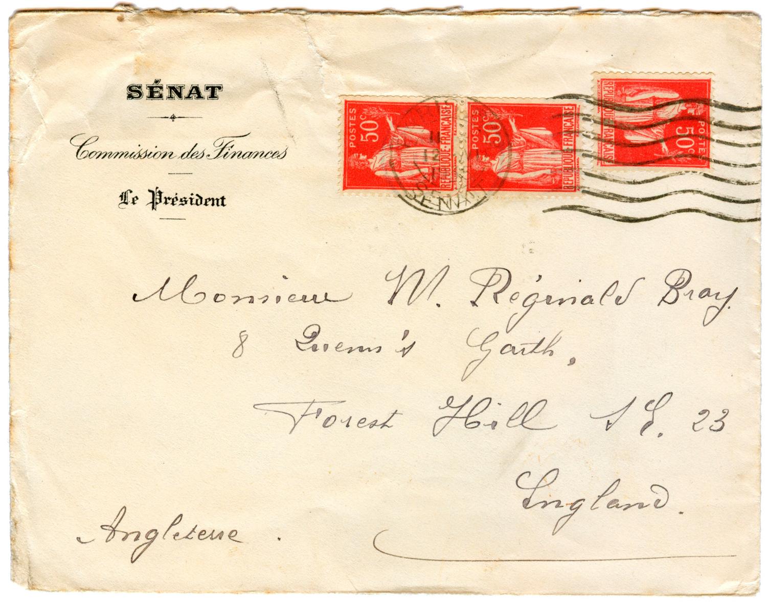 Postcard sent by Bray to Joseph Caillaux on 4th June 1935 asking for his autograph.