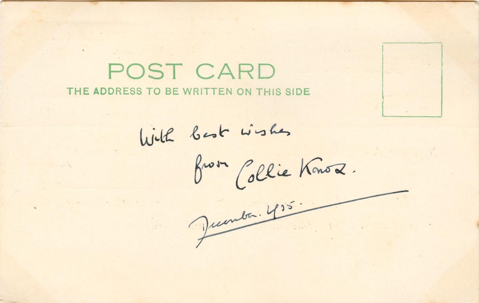 Postcard sent by Bray to Collie Knox on 30th November 1935 asking for his autograph.