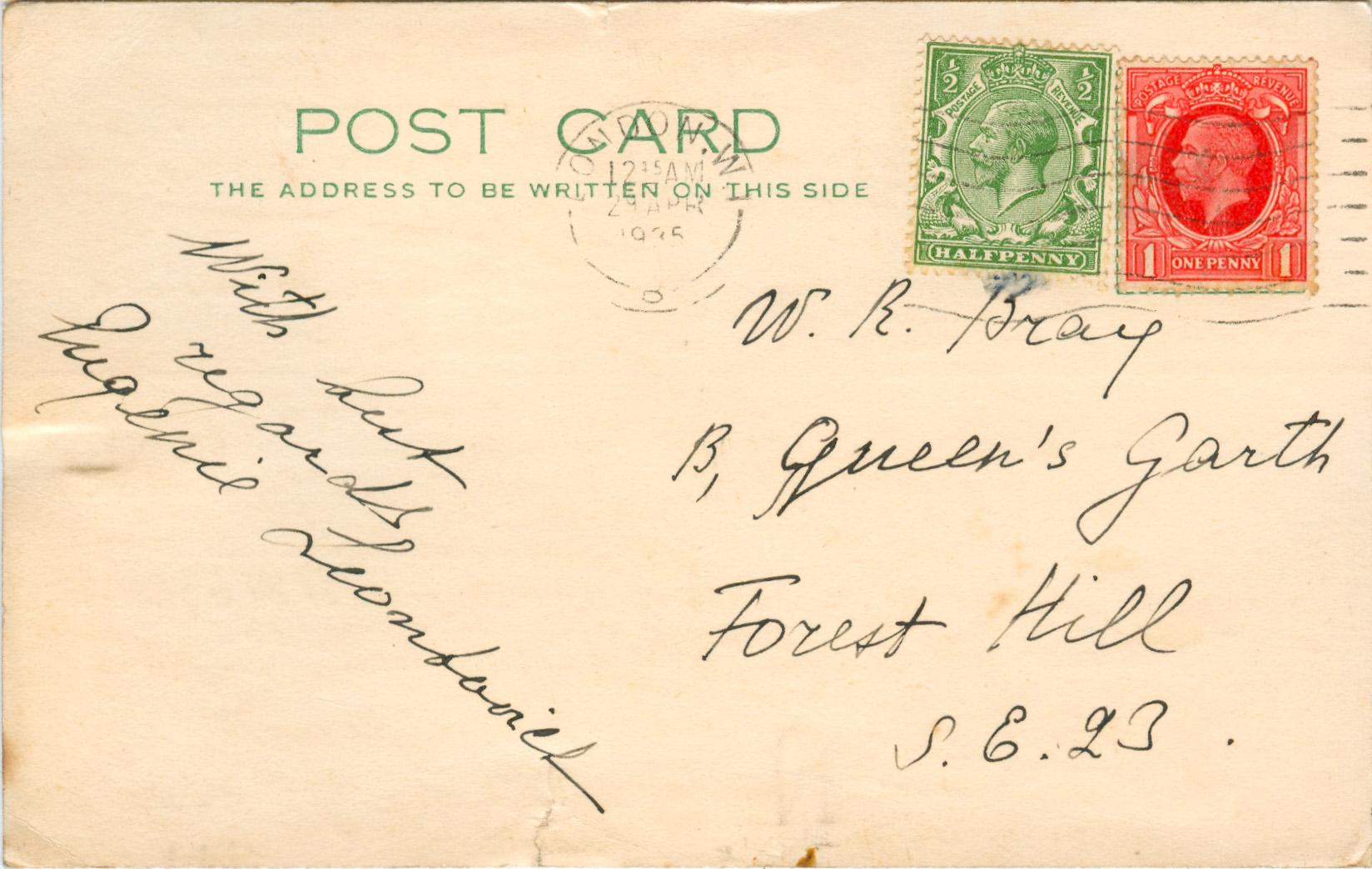 Postcard sent by Bray to Eugenia Leontovich on 20th April 1935 asking for her autograph.