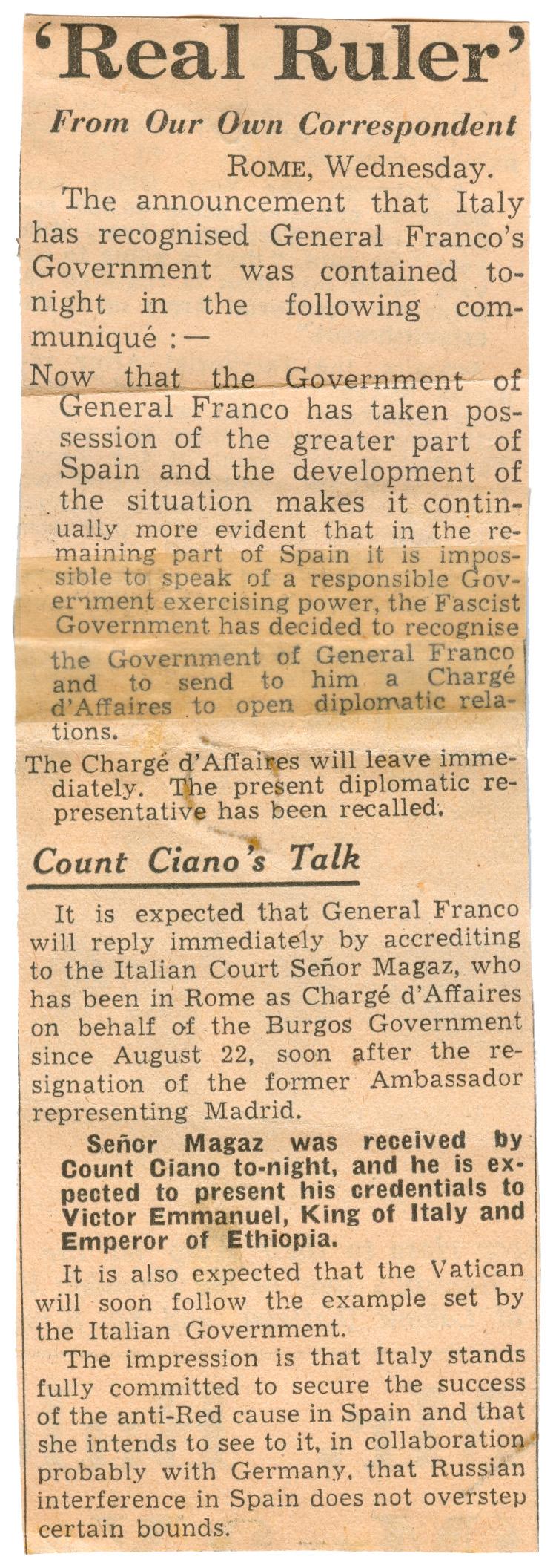 Postcard sent by Bray to Antonio Magaz on 20th November 1936 asking for his autograph.