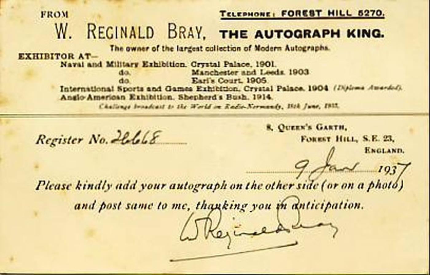 Postcard sent by Bray to Helen Haye on 9th January 1937 asking for her autograph.