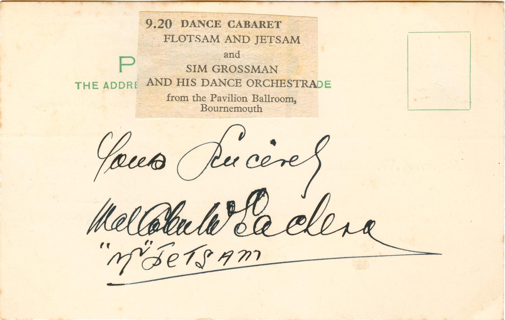 Postcard sent by Bray to Malcolm McEachern on 9th January 1937 asking for his autograph.