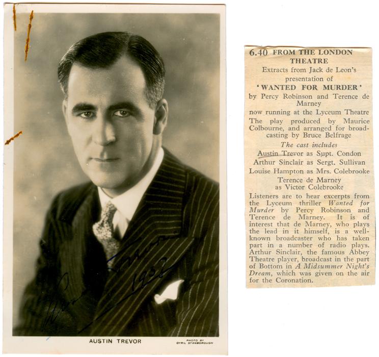 Postcard sent by Bray to Austin Trevor on 6th November 1937 asking for his autograph.