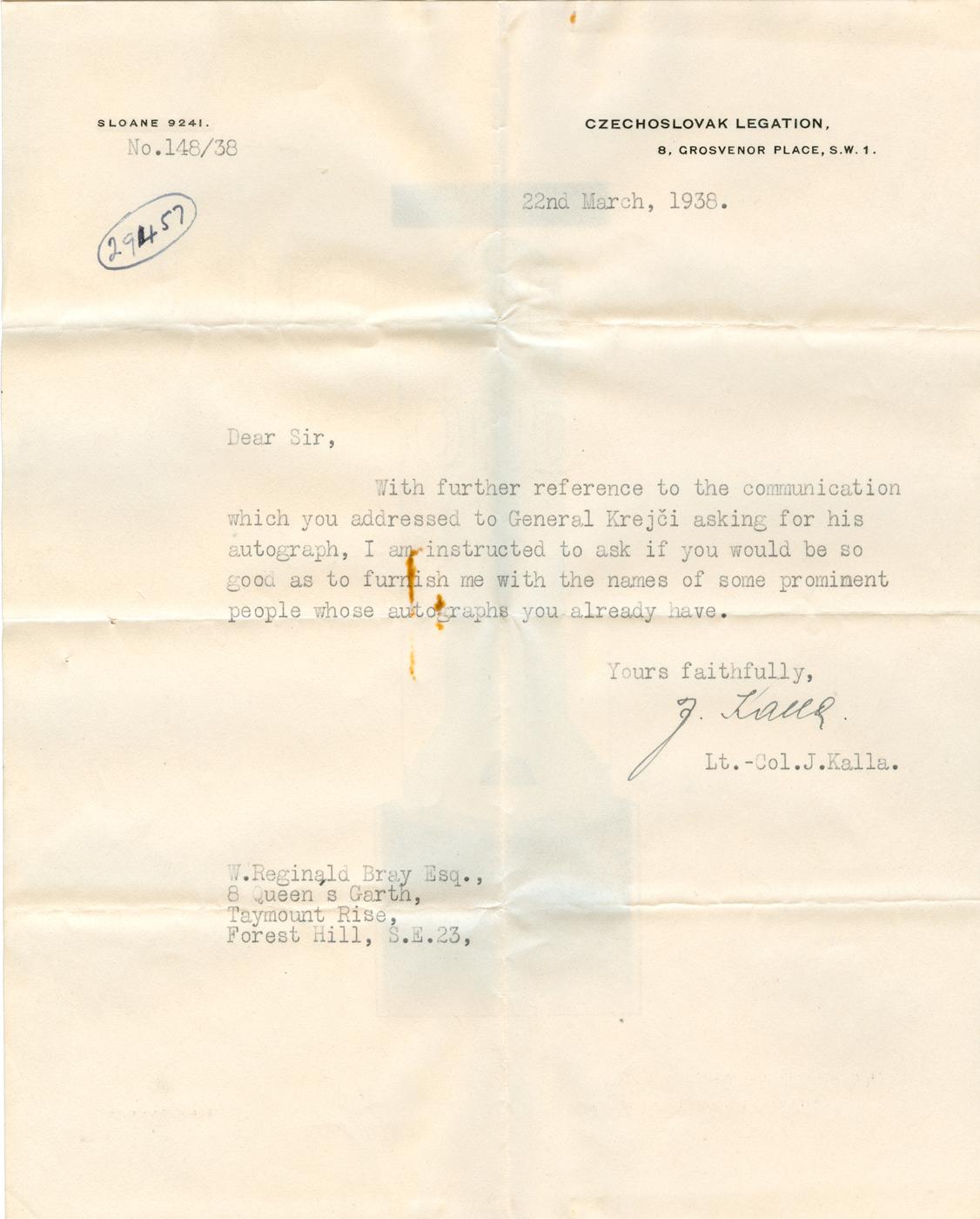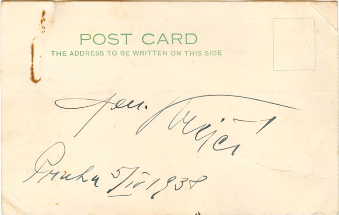 Postcard sent by Bray to Ludwig Krejci on 16th February 1938 asking for his autograph.